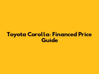 Toyota Corolla: Financed Price Guide