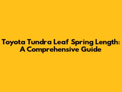 Toyota Tundra Leaf Spring Length: A Comprehensive Guide
