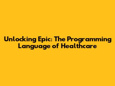 Unlocking Epic: The Programming Language Of Healthcare