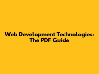 Web Development Technologies: The PDF Guide